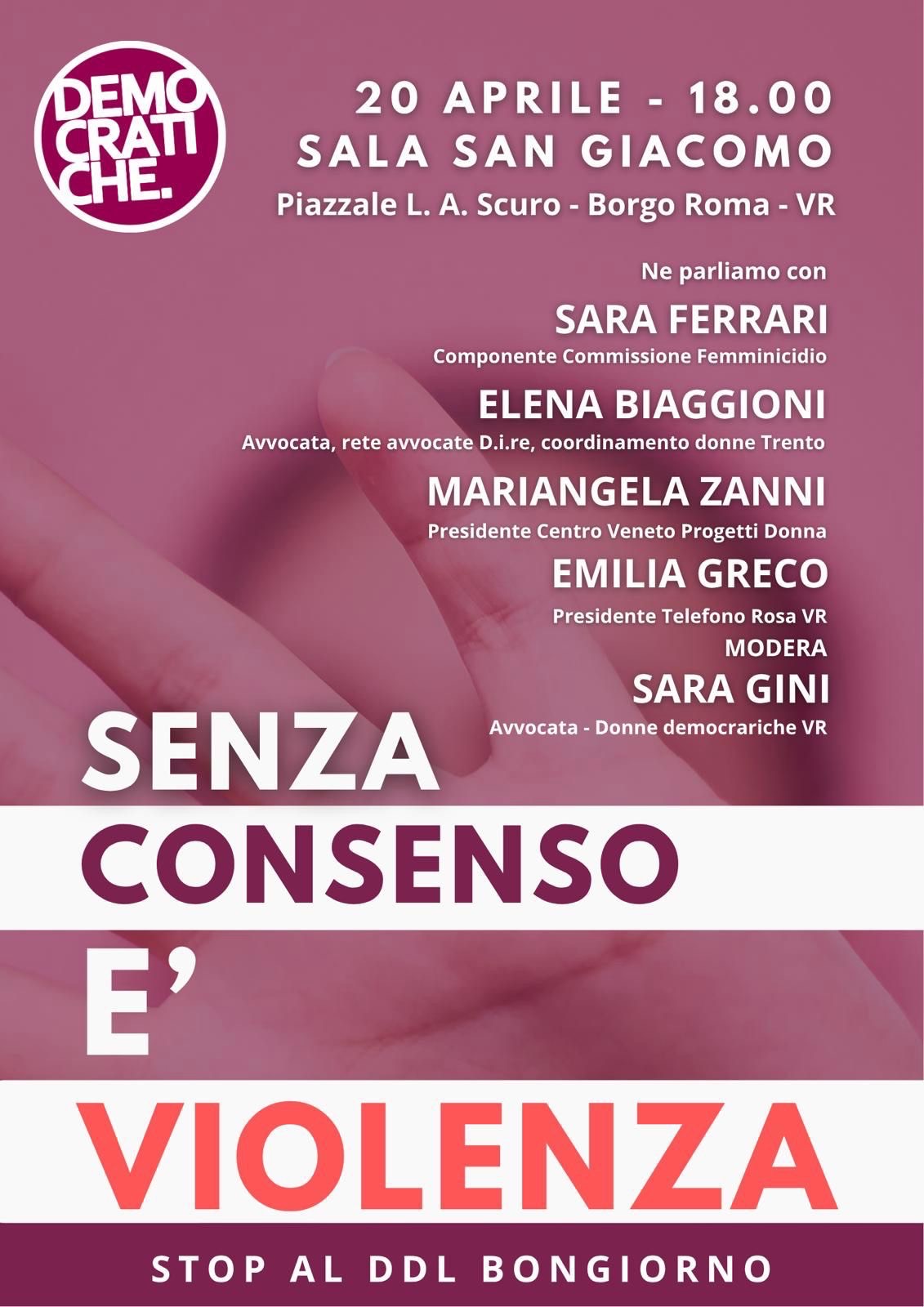 Lunedì 20 aprile, alle ore 18:00, presso la Sala San Giacomo in Borgo Roma, si terrà un importante confronto sul DDL Buongiorno. Tra i partecipanti, ci sarà anche la nostra Associazione, tramite la sua Presidente, Emilia Greco.